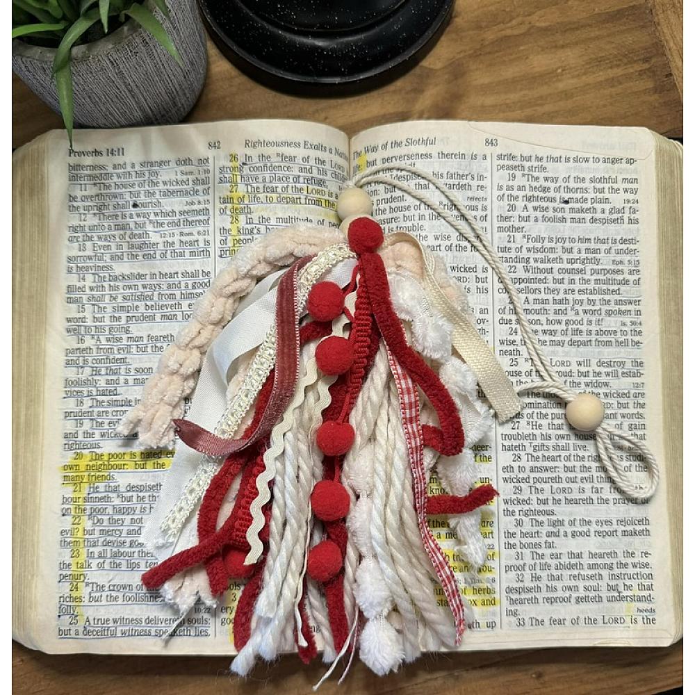 MEDIUM TASSEL; RED AND WHITE/CREAMS