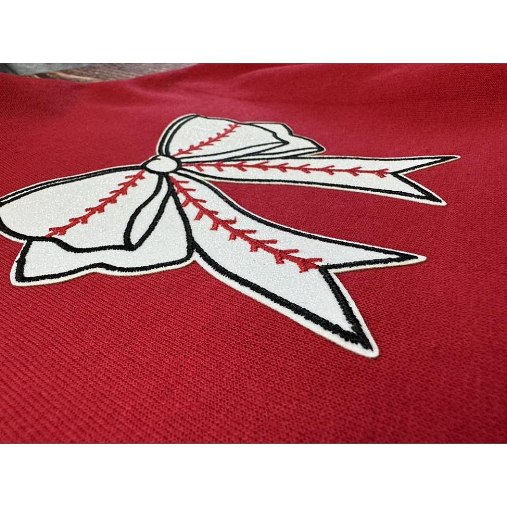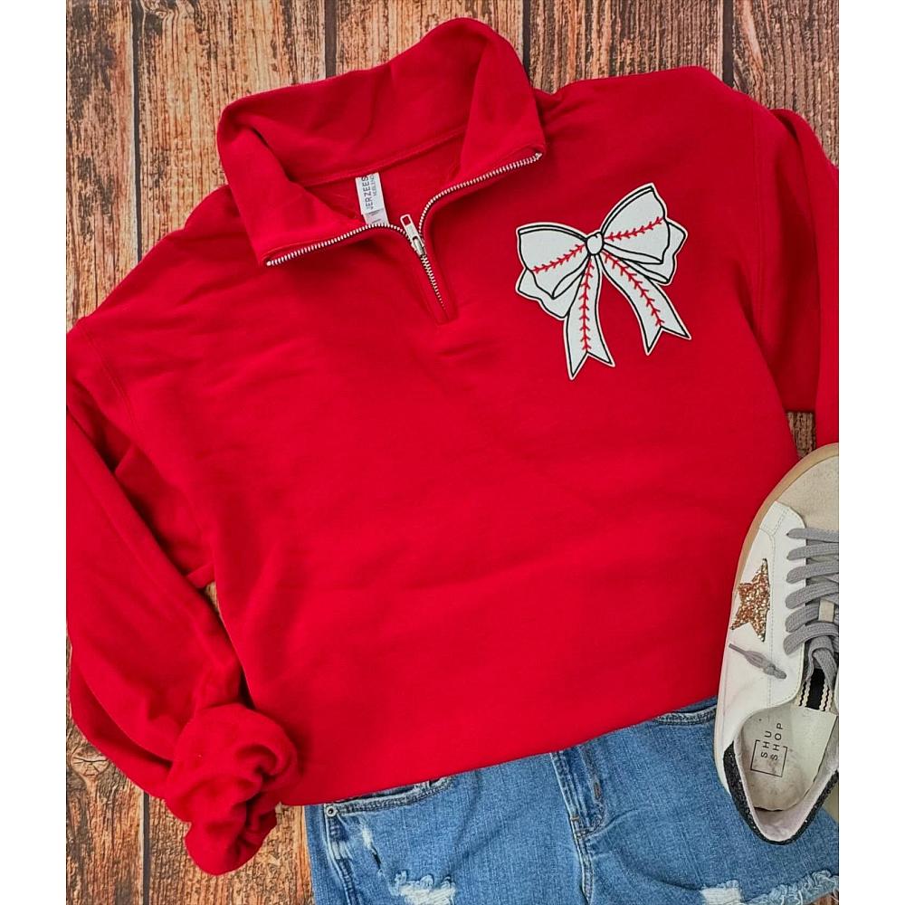 APPLIQUE PATCH APPLIED TO QUARTER ZIP WITH PERMANENT ADHESIVE FOR LONGEVITY.