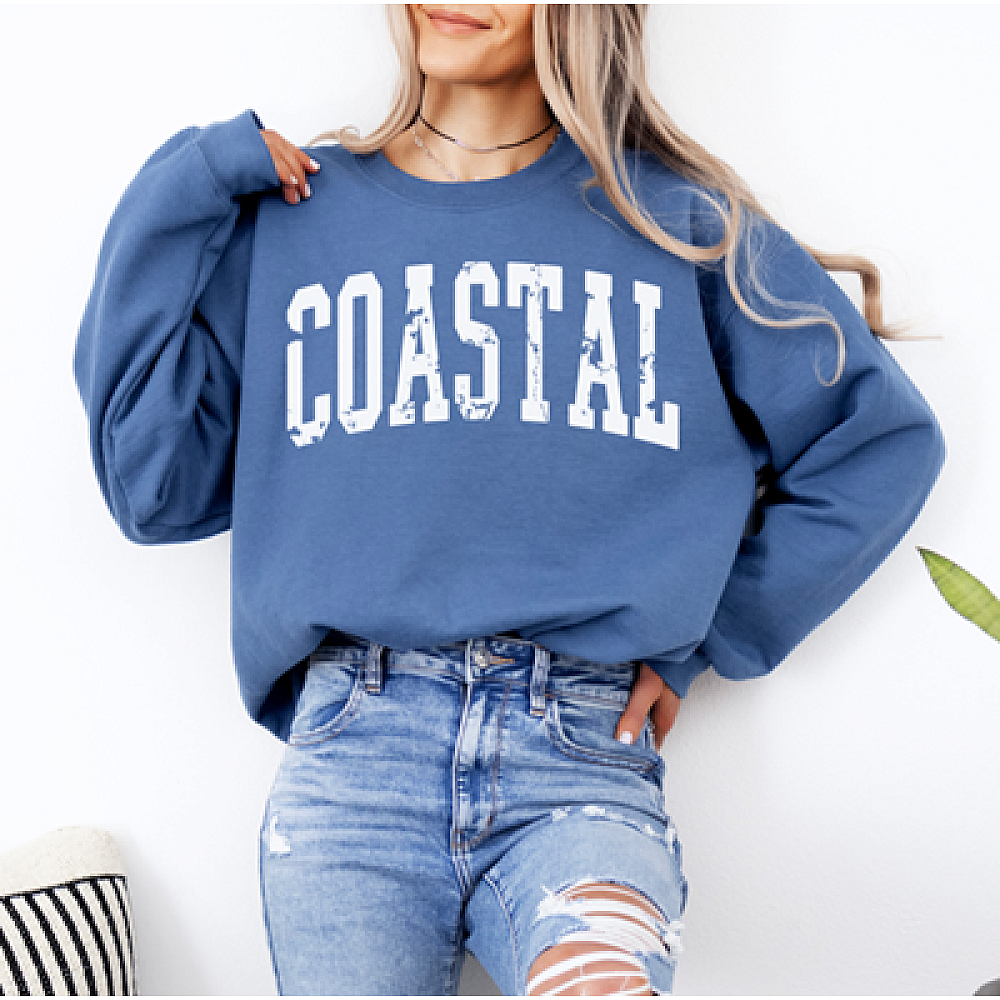 PRINTED ON GILDAN INDIGO BLUE SWEATSHIRT