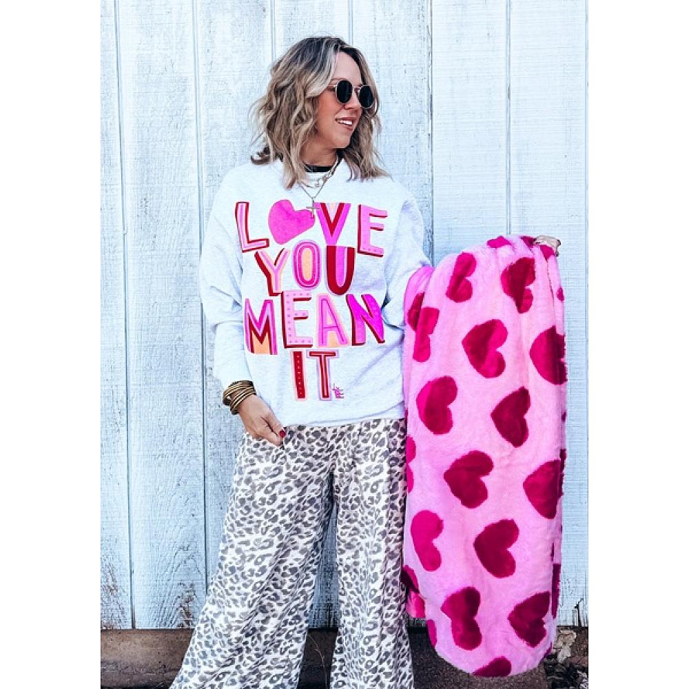 Screenprinted on unisex Ash Grey sweatshirt.