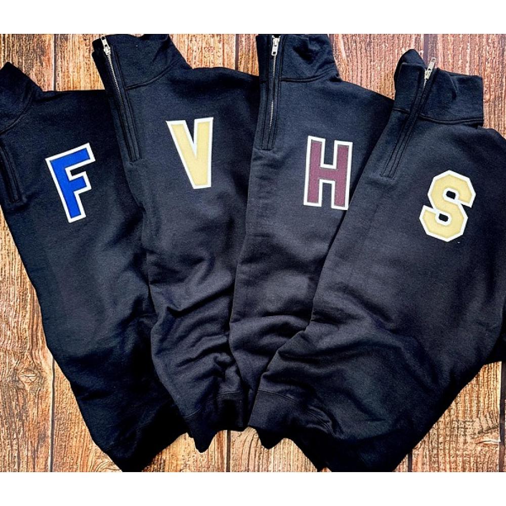 MADE WITH TWILL WITH A FAUX EMBROIDERED OUTLINE AND SECURED TO THE GARMENT BY PERMANENT ADHESIVE.
